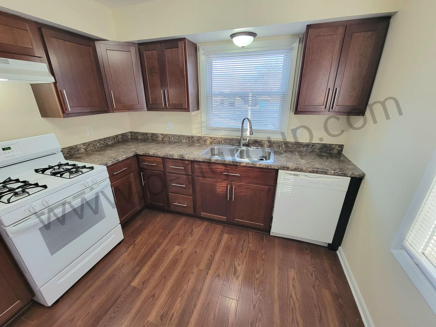 2 bedroom 1 bath ranch duplex Features: updated windows, updated bathroom with beautiful tile, modern kitchen cabinets and counters, brand new refrigerator, carpet in bedrooms, linen closet, private basement area with laundry hookups and storage, 1 off street parking space.