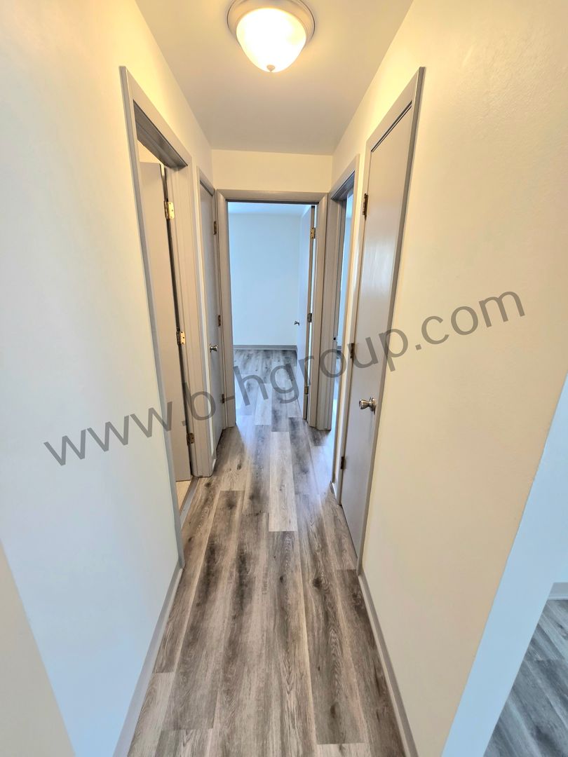 2 bedroom 1 bath Upper Unit Features: Brand new LVP flooring in living rooms and bedrooms, updated kitchen, dinette area, spacious living room, balcony, linen closet, wall a/c unit, basement coin laundry and private storage locker, off street parking for 1 vehicle.