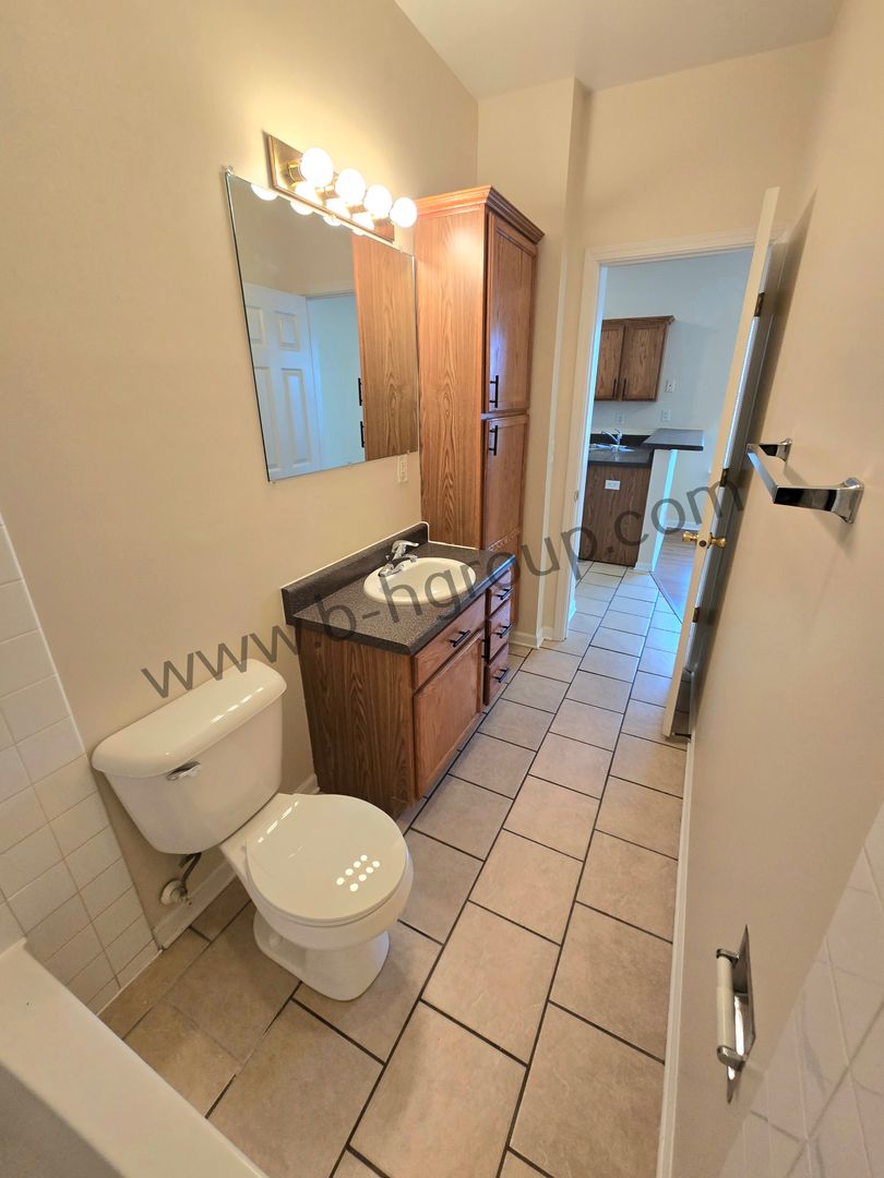 2 bedroom 1 bath Upper Unit Features: Updated kitchen with tile flooring, updated wood laminate flooring in living room and bedrooms, updated bathroom with tile flooring, private basement for storage with laundry hookups. Private front entry. On street parking only.